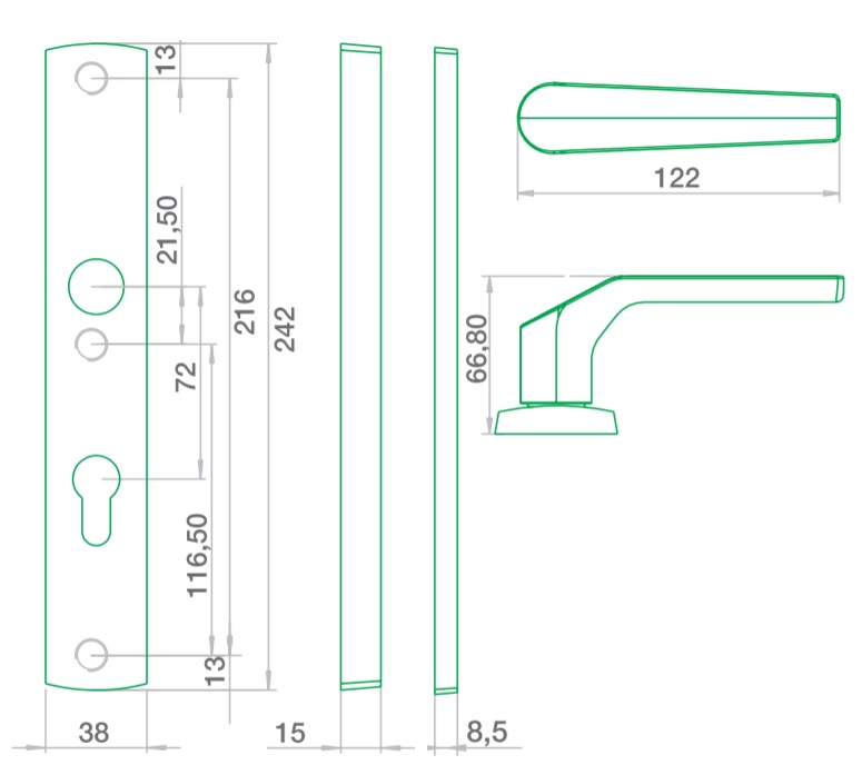 - możliwość montowania klamki ze wszystkimi typami zamków również 3-punktowymi