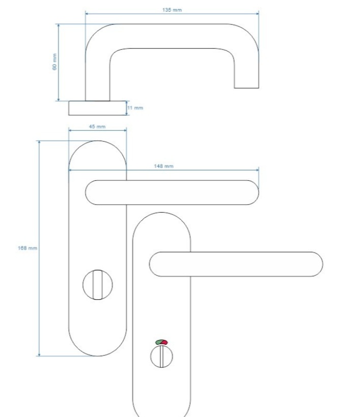 Klamka na krótkim szyldzie 72mm WC