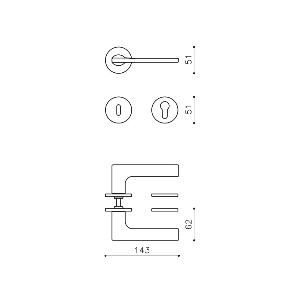 W komplecie: klamki,śruby,trzpień,trzpień 8mm,imbusy,klucz imbusowy