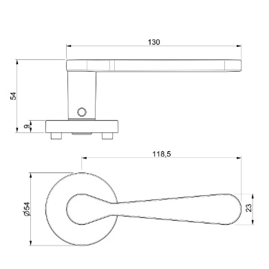 Klamka ALVA T-1881-126.P61 klamka na szyldzie dzielonym okrągłym, pasują do niej rozety T-002-126.P61, T-003-126.P61, T-004-126.P61