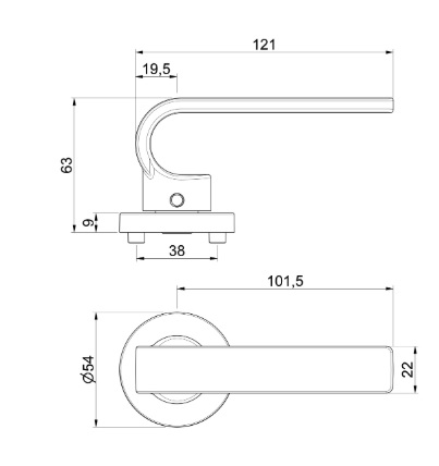 Wyposażona w śruby przelotowe i obustronną sprężynę powrotną, która powoduje, że po naciśnięciu klamka samoczynnie wraca do pozycji poziomej, co wydłuża żywotność zamka.