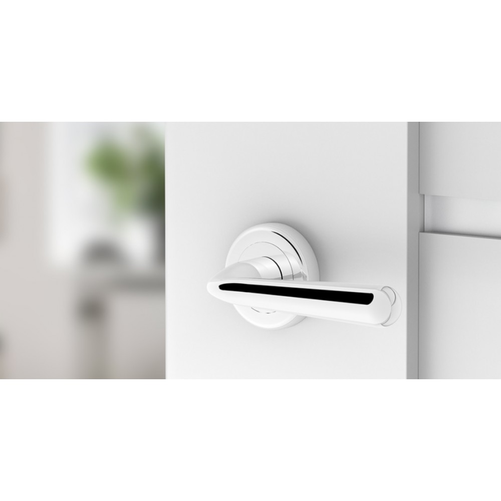 Klamka posiada wspomaganie powrotu do pozycji poziomej oraz podwójny system docisków imbusowych.