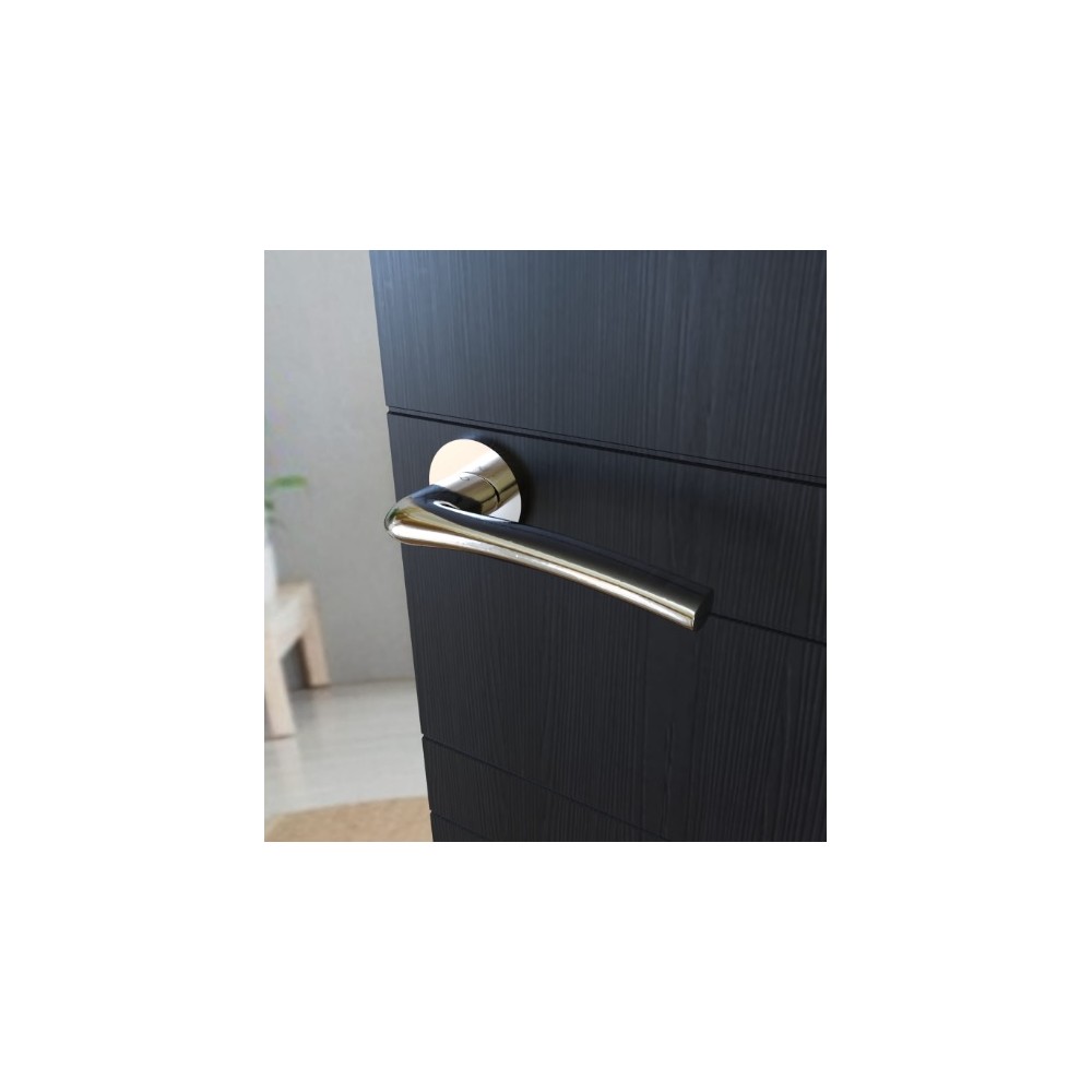 Klamka na szyldzie dzielonym okrągłym, posiadająca wspomaganie dwustronne.
