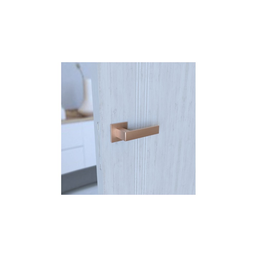 W zestawie znajdują się dwie klamki i zestaw montażowy(trzpień 8x8 mm, śruby przelotowe i wkręty do drewna).