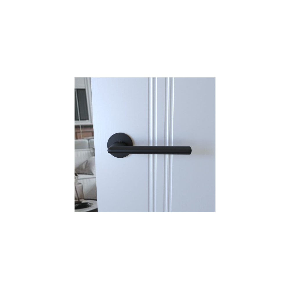 Klamka na szyldzie dzielonym okrągłym, posiadająca wspomaganie dwustronne.