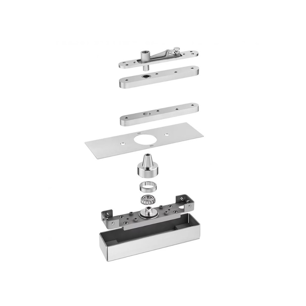 Wszystkie elementy zestawu oferowanego są w stali nierdzewnej. Zestaw zawiera zarówno łożyska w górnym i dolnym zawiasie.